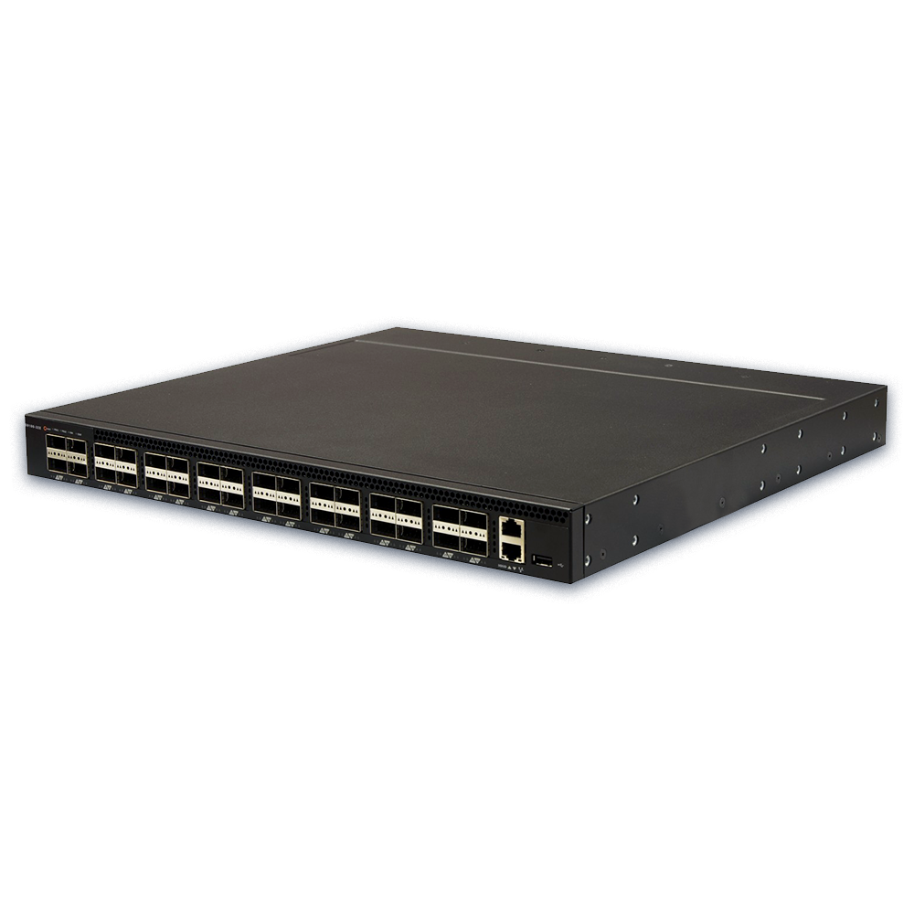 - 1 RU high-density 10/25/40/50/100GE fixed switch with up to 32 100GE (QSFP28) ports.