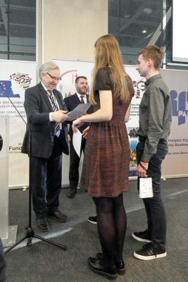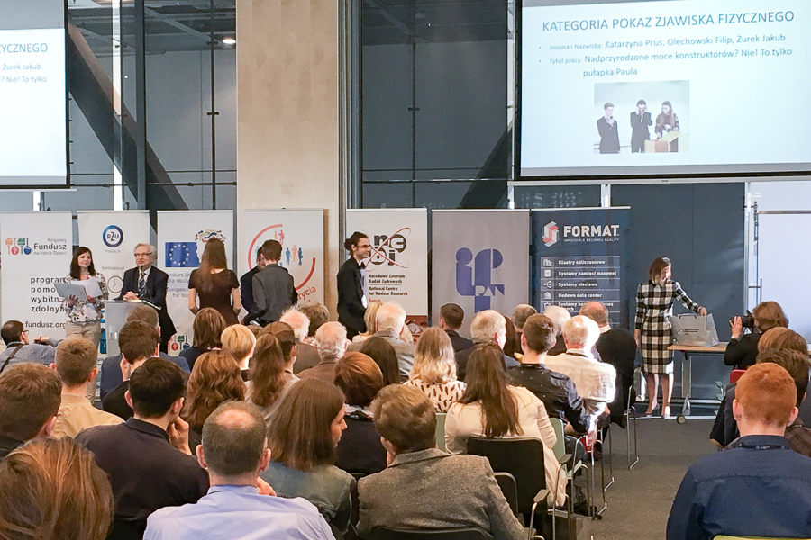 Uczestnicy tradycyjnie startowali w trzech kategoriach: pokazu zjawiska fizycznego, eseju i pracy naukowej. W pierwszej z nich nagrodzono równorzędnymi pierwszymi nagrodami uczniów z Leżajska, Śremu i zespół z Dębicy. W swoich pokazach zaprezentowali oni zjawiska optyczne, komorę mgłową i pułapkę jonową Paula. W kategorii esej pierwszą nagrodę wywalczył tekst licealisty z Zielonej Góry o związkach fizyki i matematyki. W kategorii pracy naukowej nie było pierwszej nagrody, a dwie drugie powędrowały do Wielunia i Płocka za prace o pomiarze grubości włosa i o prądach w graniastosłupach foremnych. W niedzielę laureaci odebrali nagrody na uroczystości w Centrum Nauki Kopernik. Nagrodzeni mieli okazję zaprezentować swoje prace licznie zgromadzonej publiczności CNK, która jak zwykle okazała się najbardziej wymagającym recenzentem.